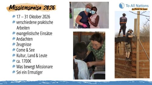 Wer für die Arbeit für Rüdiger oder Karin spenden möchte, kann dies direkt über To All Nations e.V. tun: